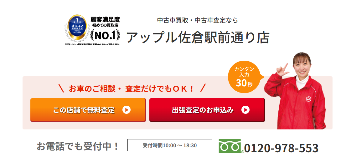 アップル佐倉駅前通り店は、千葉県内でもとくに信頼度の高い中古車買取専門店として知られています。明るく丁寧なスタッフ対応と、明確な査定基準による納得の高価買取が特徴です。