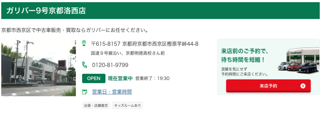 | ガリバー9号京都洛西店 | 京都府京都市西京区樫原芋峠44-8 (Googleマップ) |