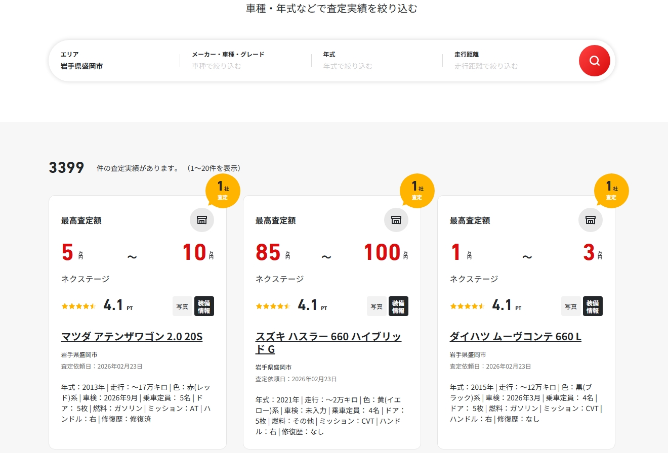 盛岡で口コミ・評判の良い車買取店はネクステージです。
