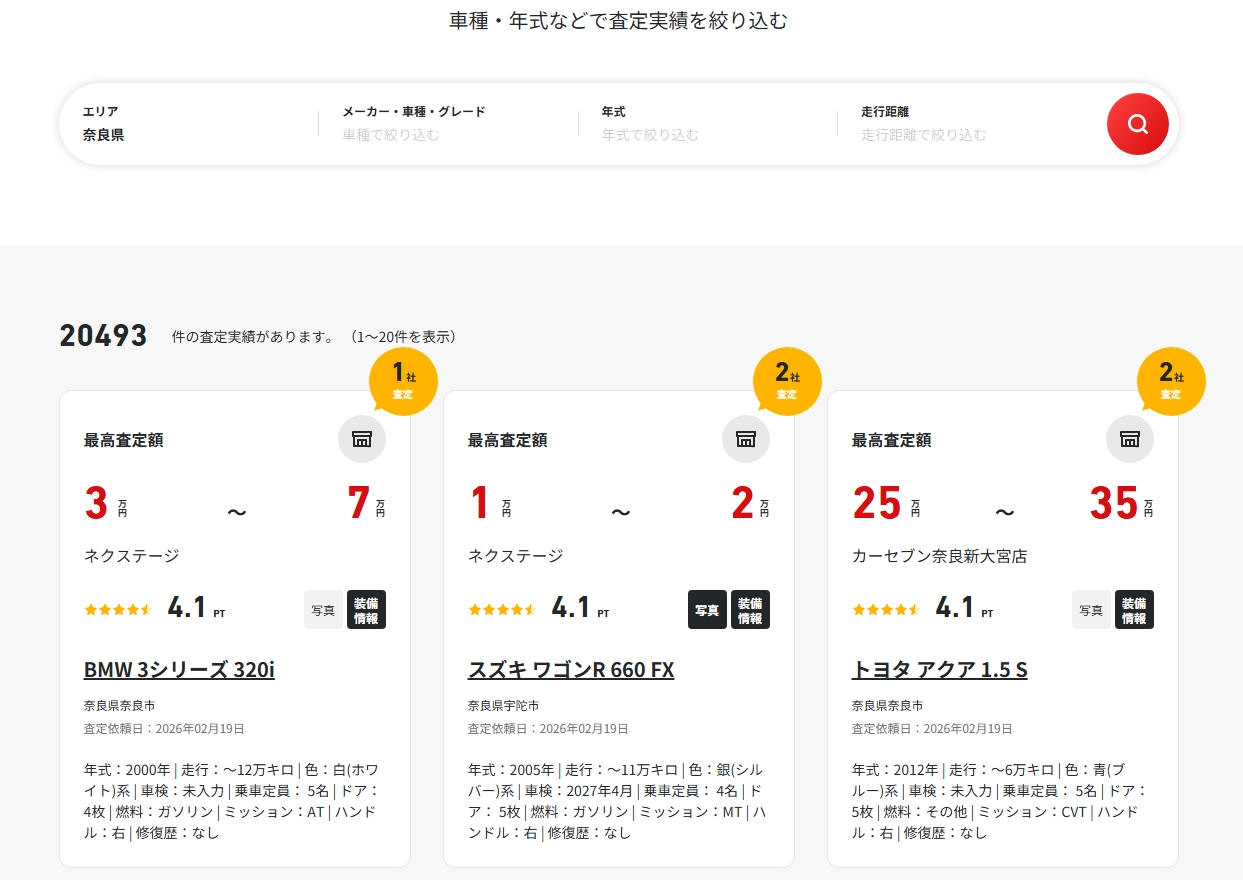 ネクステージは、利用者からの口コミ評価が高いことで知られる車買取の大手店です。奈良エリアでもスマートな対応と高額査定で信頼を集めています。県内には奈良店と橿原店があるため、最短当日での出張査定も可能です。