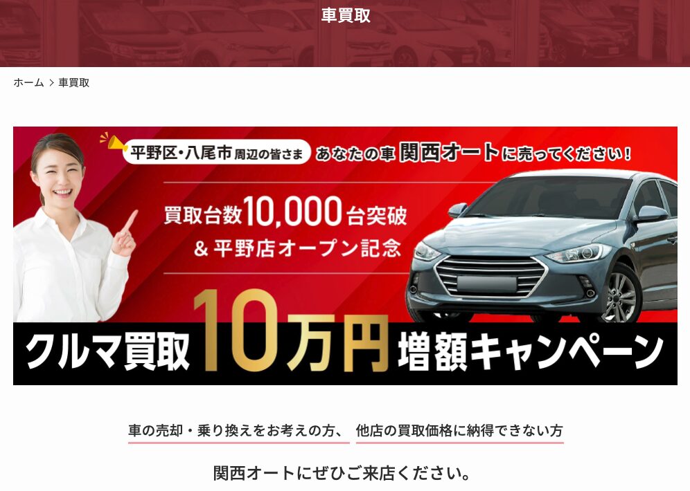関西圏全域への出張査定にも対応しており、大阪府内であれば迅速な対応が期待できます。八尾市を中心に、東大阪市や柏原市など周辺エリアでの車買取実績も豊富で、地元密着ならではの丁寧なサービスと親身な対応が好評を得ている車買取業者です。