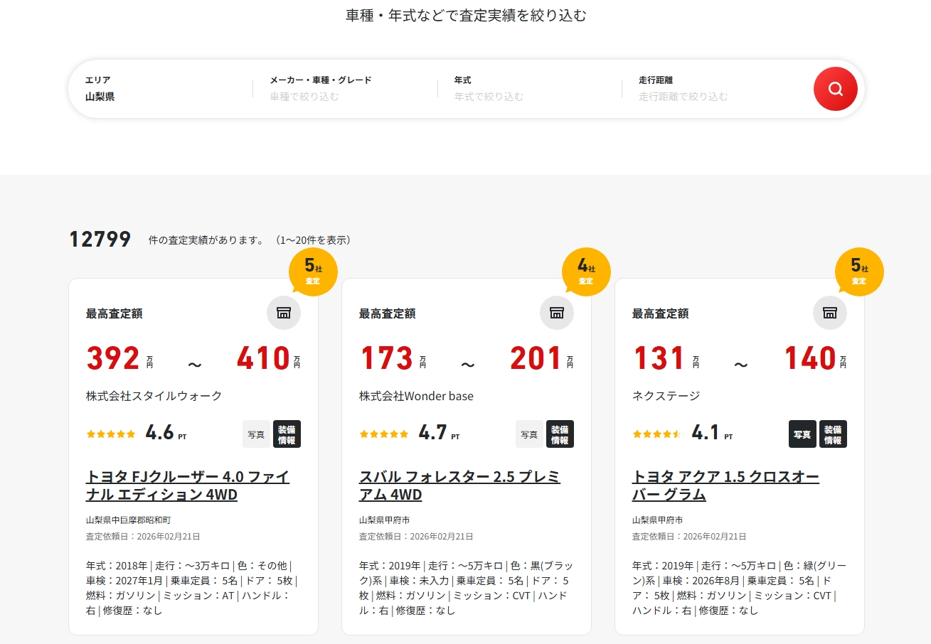 - 山梨県内の業者による査定価格争奪戦!最大20社の見積もりを一度でゲット