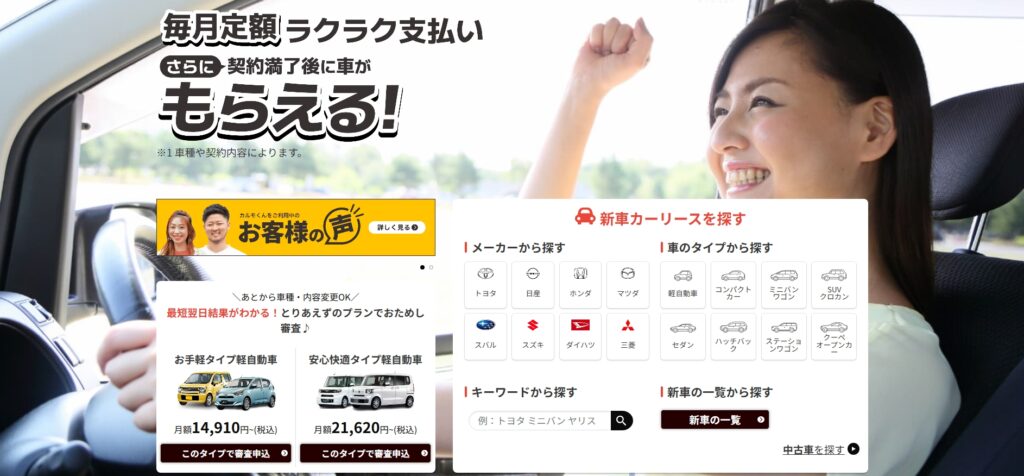 - 定額カルモくんは顧客満足度92.7%の人気カーリース!充実したサポート体制で初心者でも安心
