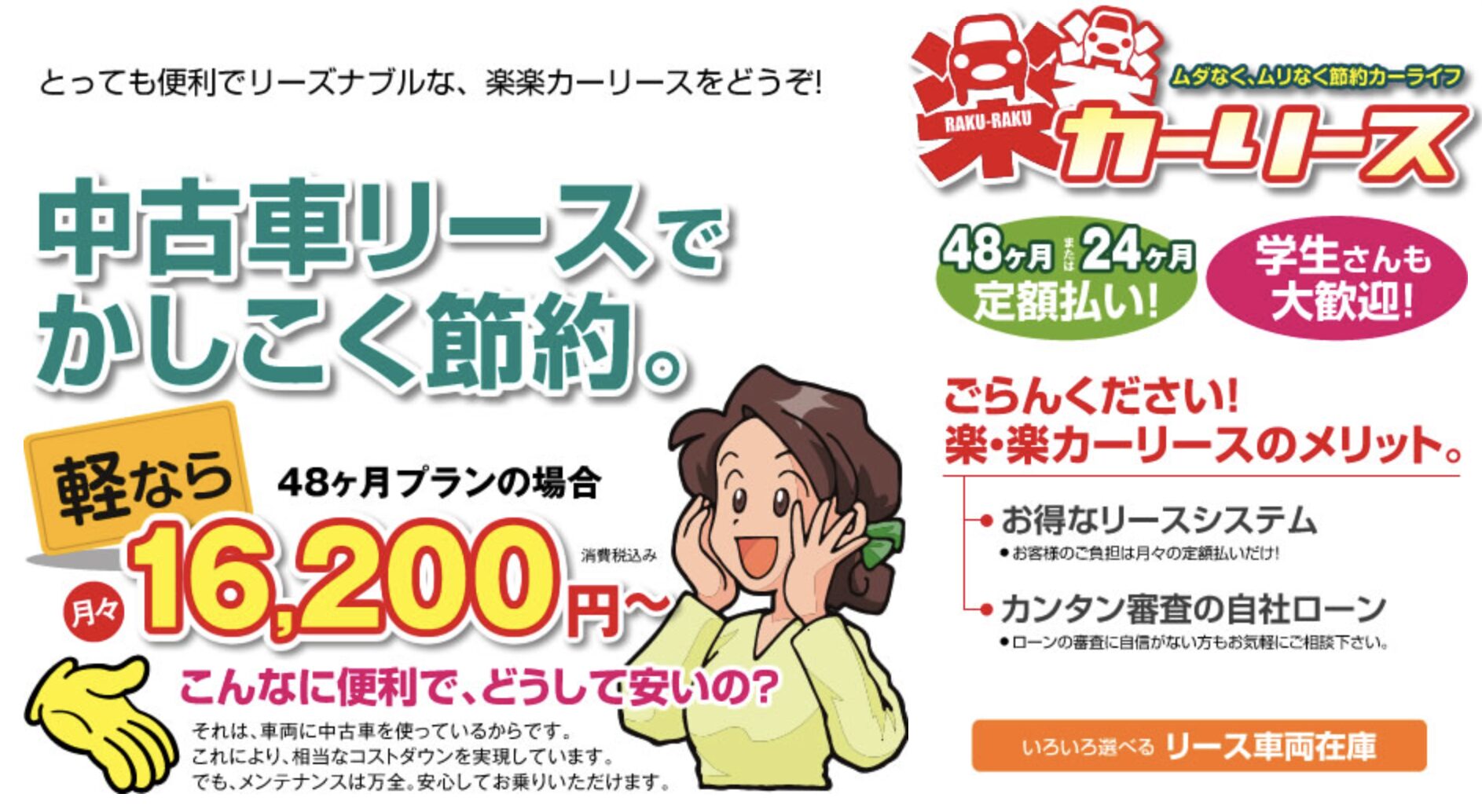 友自動車販売は、中古車リースを提供する会社です。自社ローンによる支払いシステムを採用しており、クレジット会社の審査が不要なため、審査に不安がある方でも気軽に利用できます。また、契約期間は2年・4年から選択可能で、費用を抑えて車に乗りたい方や期間限定で車が必要な大学生にもおすすめです。