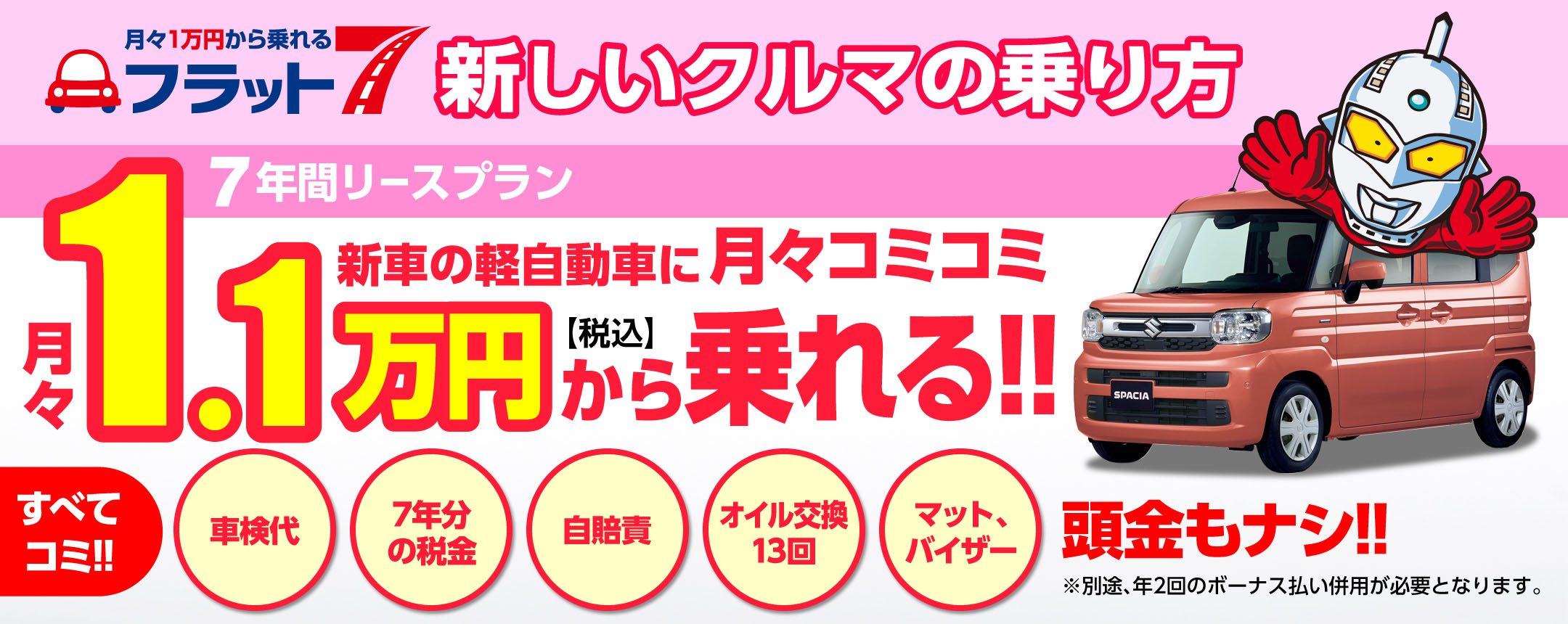 | 月額料金(例) | 【スペーシア】 11,000円〜 (7年) (ボーナス払いあり) 【アクア】 22,000円〜 (7年) (ボーナス払いあり) 【ヴォクシー】 32,500円〜 (7年) (ボーナス払いあり) |