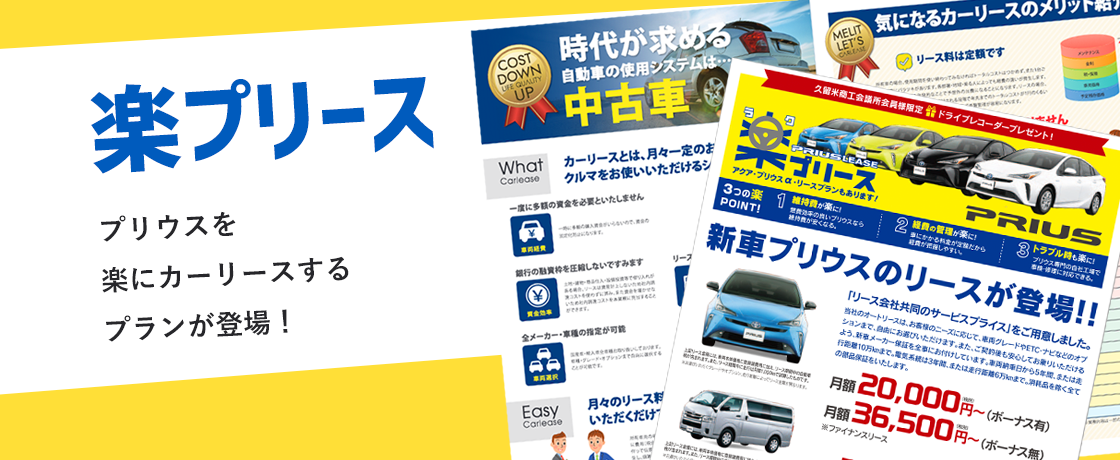- 新車のリース料金は久留米最安値!中古車も安く、それぞれ月額5,500円~で乗れる!
