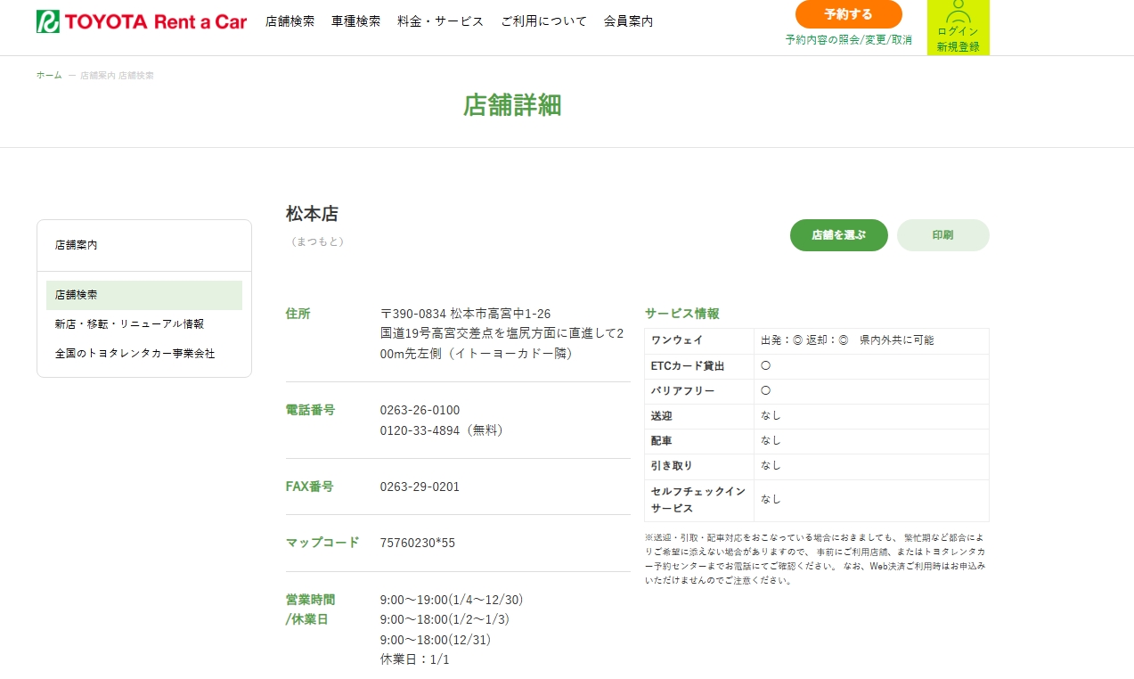 トヨタレンタリース松本のアクセス情報