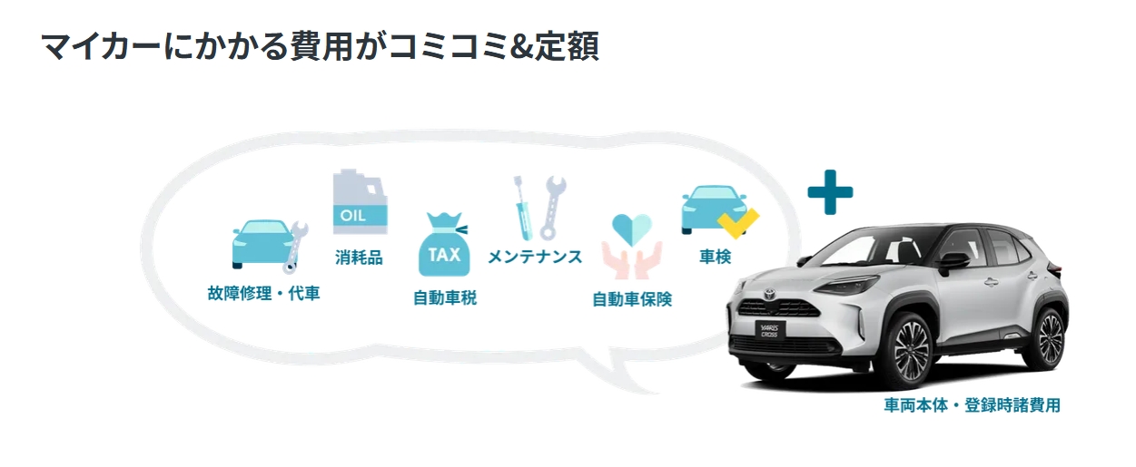 | 料金に含まれる項目 | ・車両代金 ・登録諸費用 ・各種税金 ・自賠責保険 ・メンテナンス費用 |