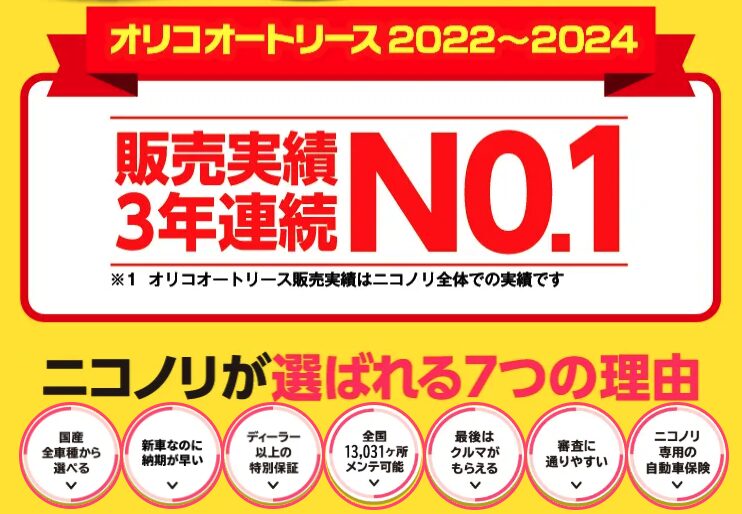 2位:ニコノリ(富山県内に納車対応)は富山県最安カーリース!保証や維持面も充実