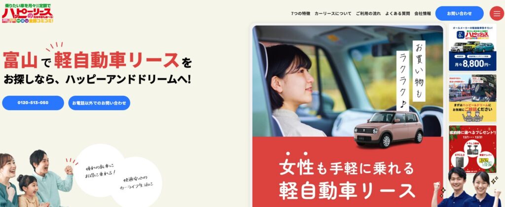 11位:ニコちゃんリース(富山市黒瀬)は2ヶ月からの短期リースに対応