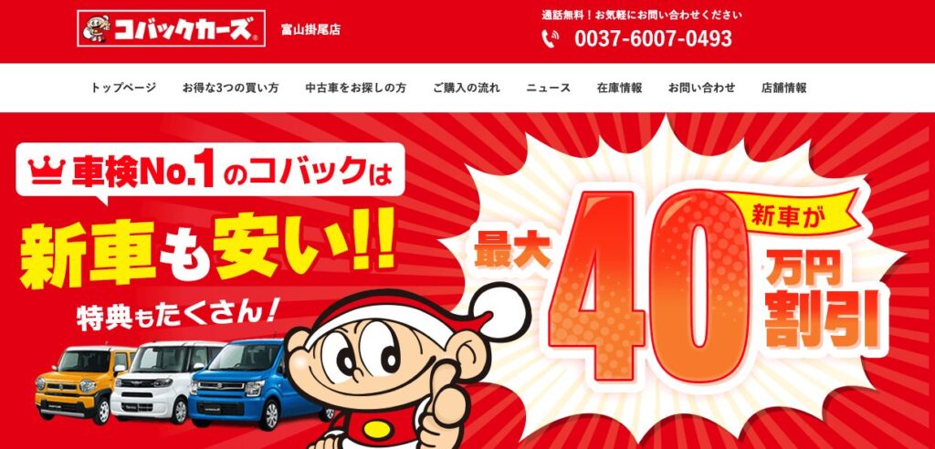 - 富山市や高岡市など自宅近くに店舗や整備工場があるメンテナンスの利便性
