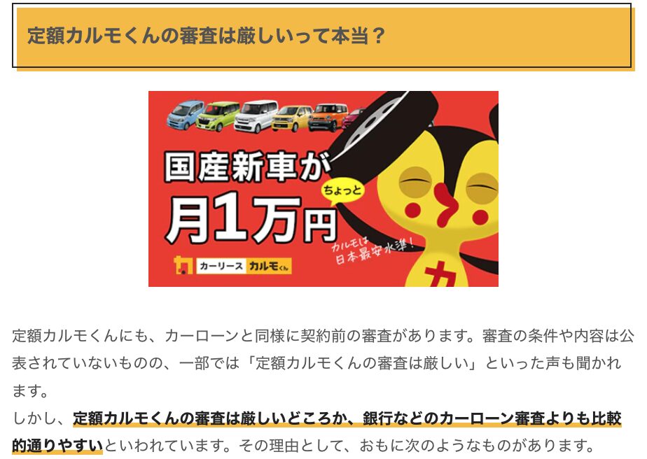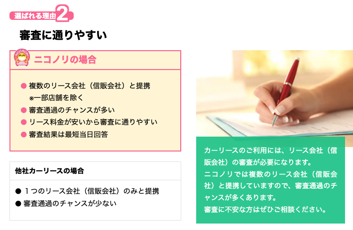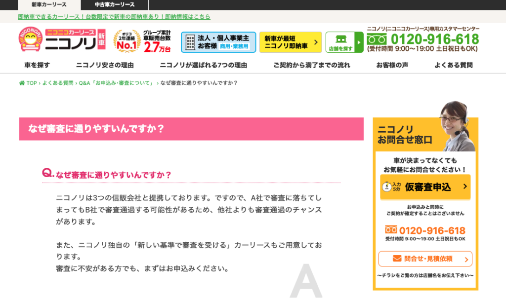 →ニコノリ・カルモなどいくつかのカーリースは公式HPで「審査が甘い」と明言している