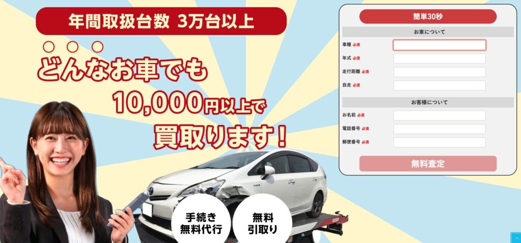 • レッカー代・廃車手続き代行など全工程をやってくれて完全無料