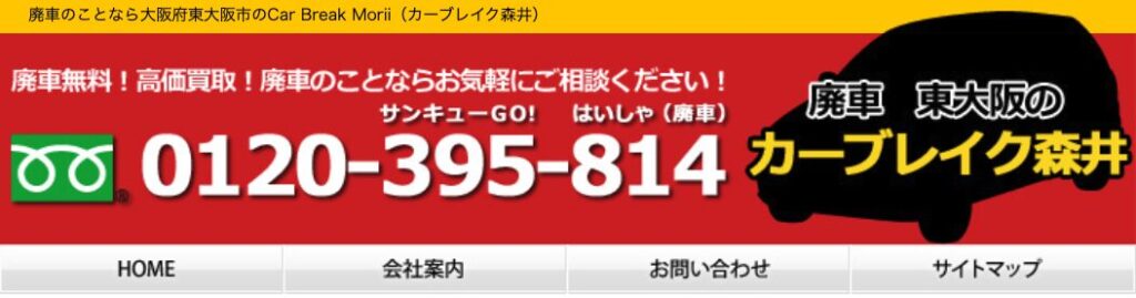 カーブレイク森井は東大阪市衣摺に拠点を置き、大阪府全域で廃車買取を行う地域密着型業者です。他社で処分費用がかかると言われた車でも買取可能で、お電話一本で引取に伺います。持ち込みの場合は買取価格に2,000円上乗せ。車の知識が全くない方や女性にもわかりやすく説明し、事故歴や修復歴がある車もパーツ毎に価値を見出して買取します。