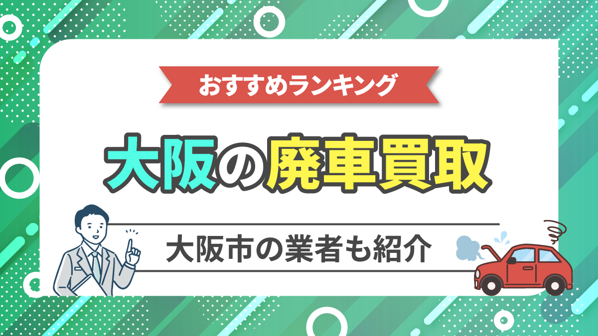 本記事では大阪府で利用できるおすすめの廃車買取業者をご紹介します。大阪市の業者や高価買取が期待できる廃車買取サービス、買取実績が豊富な店舗なども紹介しますので、参考にしてください。