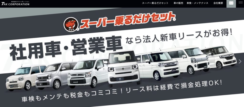 タクコーポレーションは、北斗市七重浜に店舗を構え、函館市内から車で約20分とアクセス良好です。26年以上の歴史を持つ「スーパー乗るだけセット」を提供し、月額8,800円からの「シンプル7」は函館エリアでもかなり安い部類です。